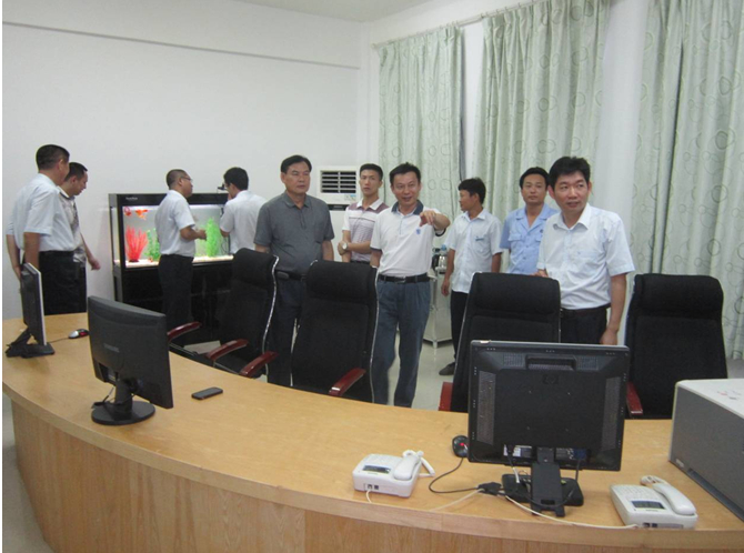 座談會結束的后,公司總經(jīng)理袁文革、黨委書記白應周陪同調研組前往西部供水考察調研。聯(lián)絡指導組一行首先現(xiàn)場參觀了凈水廠中控室、水質檢測中心、黨員活動中心,然后沿著凈水廠生產(chǎn)流程參觀了配水井、平流沉淀池、V型濾池、清水池及送水泵房等水處理工藝設施。工作人員就制水工藝流程的每一個環(huán)節(jié)向聯(lián)絡指導組進行認真細致的講解。西部凈水廠優(yōu)美的環(huán)境,先進的制水工藝,現(xiàn)代化的中控室、水質檢測中心等給聯(lián)絡組一行留下了深刻的印象。