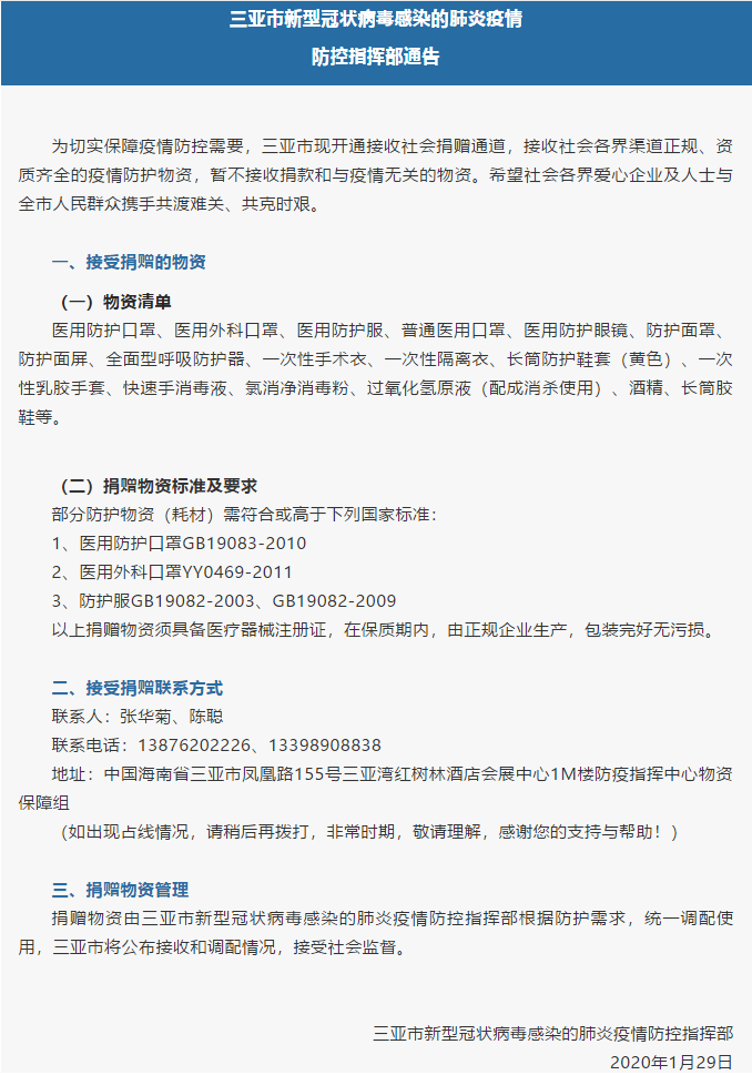 三亞官方捐贈通道開通!急需物資清單如下